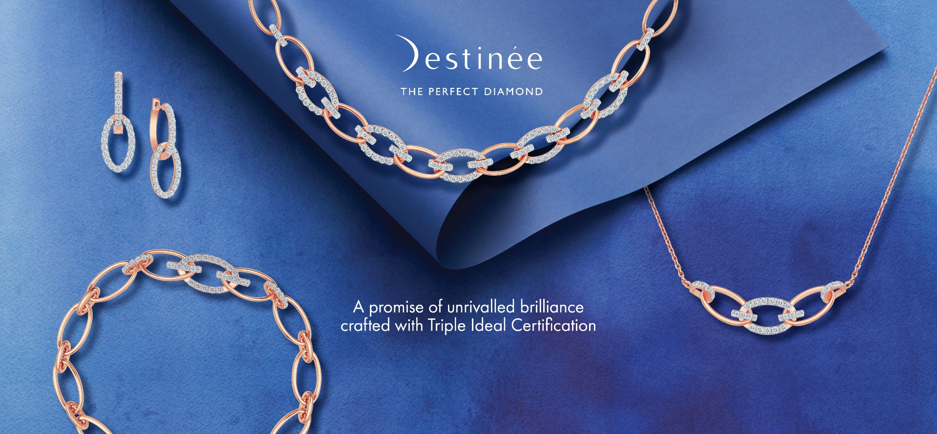 Embrace the enchanting sparkle of stars with Destinée. Inspired by the brilliance and allure of the finest diamonds, each piece is meticulously crafted with Triple Ideal Certification of unrivalled brilliance, ensuring unparalleled quality and radiance.