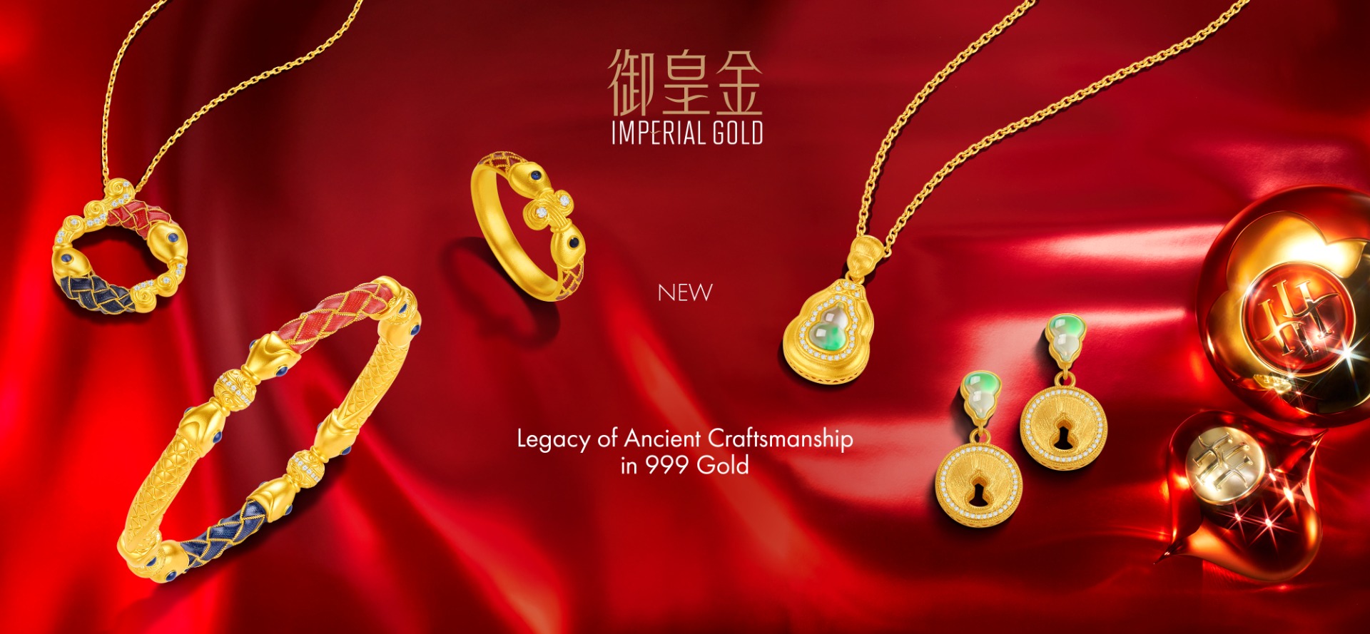 Crafted in 999 Gold and grounded in ancient craftsmanship, the Imperial Gold 御皇金 Collection centres on symbols of fortune, harmony, and prosperity. This festive season, gourd and twin koi fish motifs take focus, brought to live through enamel and diamond details inspired by the saying “双鱼戏水,福运连连”.